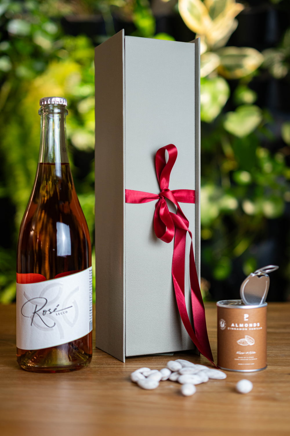 Unsere Nuss-Snacks sind perfekt auf den jeweiligen Wein abgestimmt. In der eleganten Verpackung kombinieren sie sich zum edlen Weinpräsent.